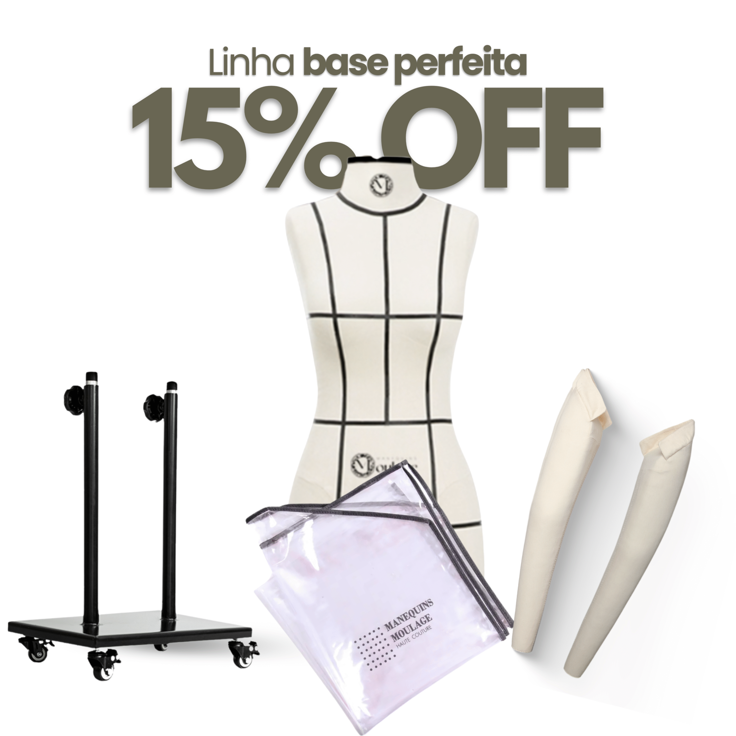 Cada manequim é 100% acolchoado, garantindo conforto, estabilidade e durabilidade durante o processo criativo. Pensando na sua praticidade, a Linha Base Perfeita já vem equipada com acessórios essenciais: par de braços, marcação , capa protetora e base com rodas, para que você possa trabalhar com máxima liberdade e organização.