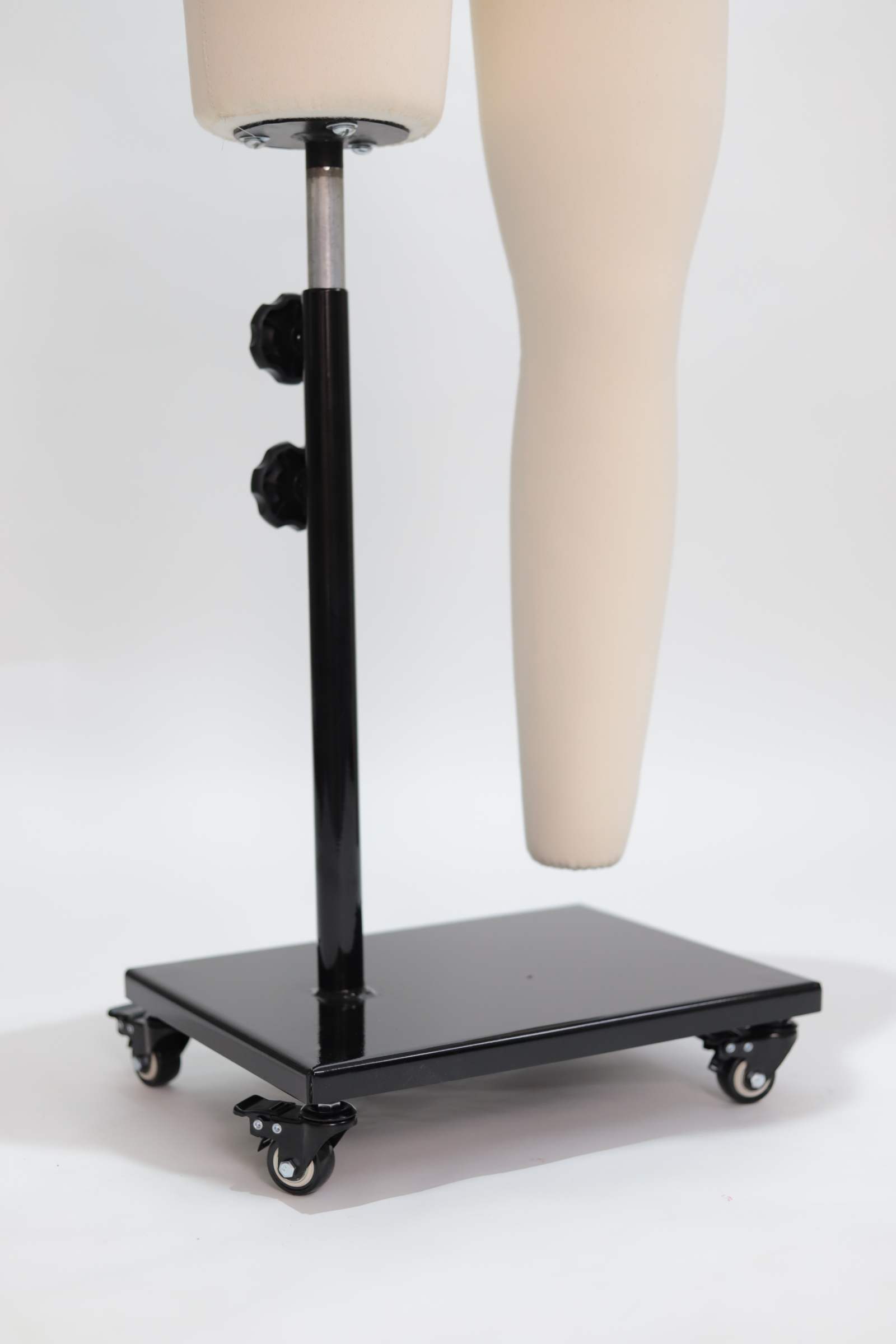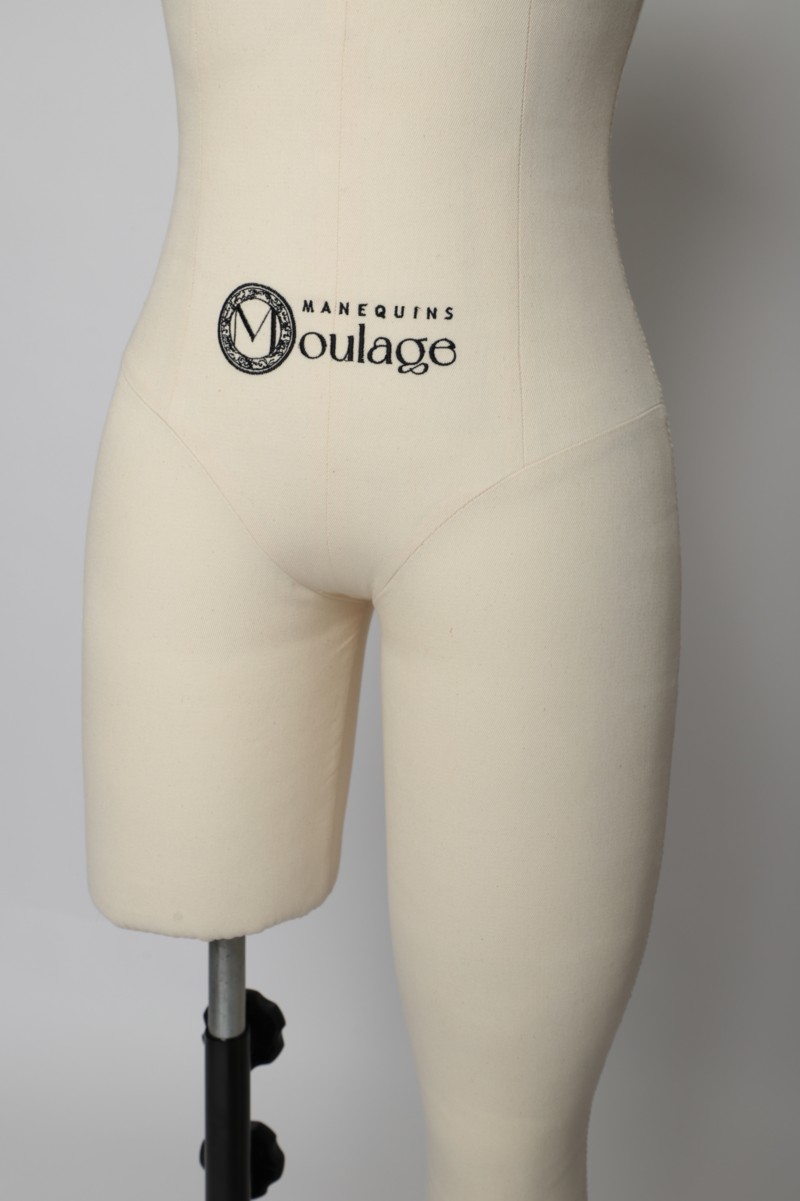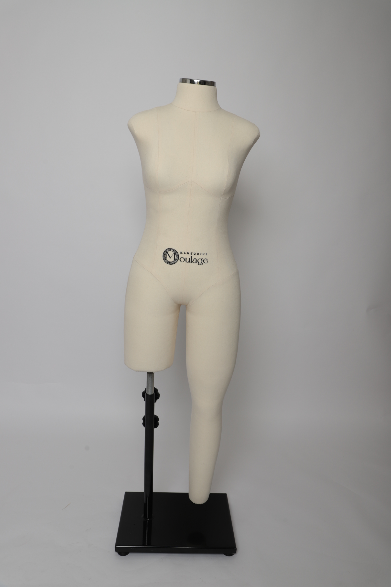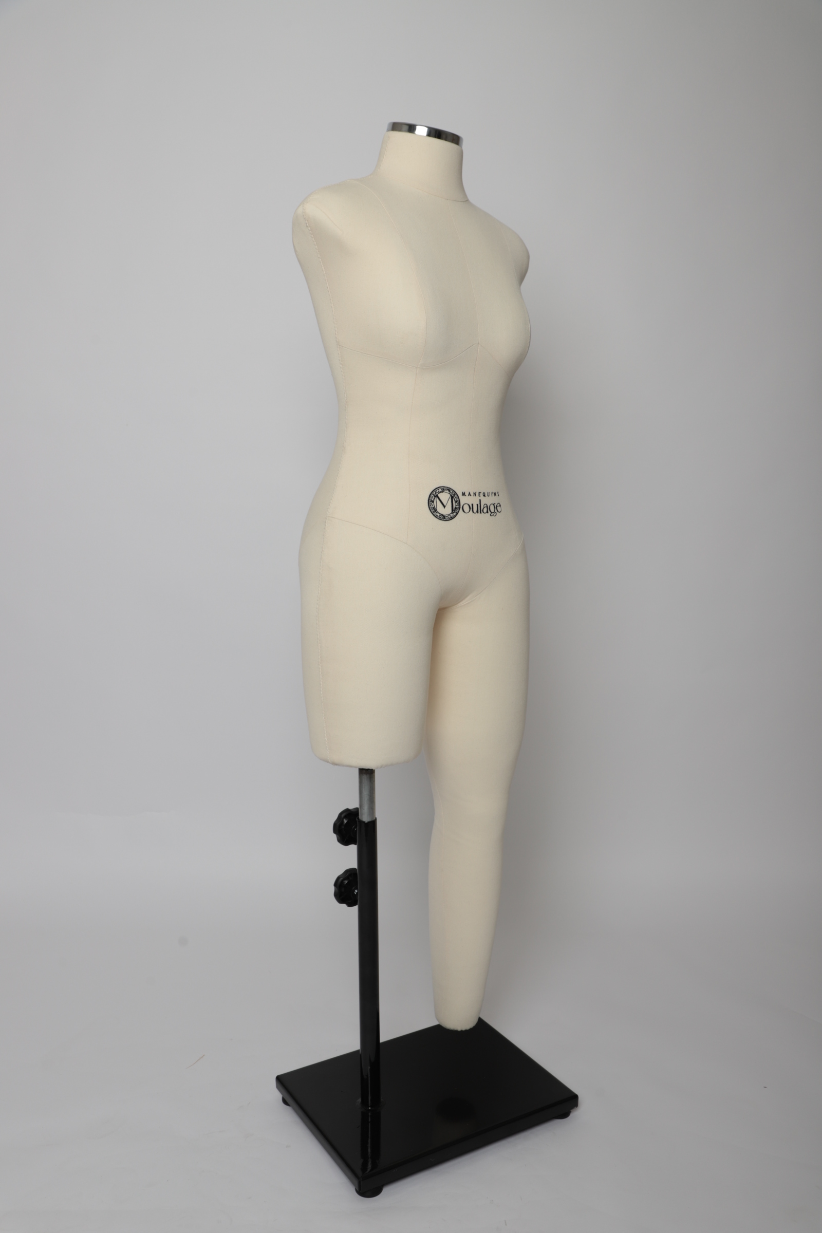 O manequim já acompanha uma base em ferro com sustentação em uma perna com estrutura interna, garantindo estabilidade e segurança durante o processo de criação.